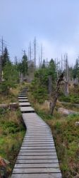 Unsere Sinne sind in der Dunkelheit nicht geschärfter, aber wir fokussierter 😉 Und somit wird eine Nachtwanderung (fast) ohne Stirnlampen für 20 Personen zu einer ungwöhnlichen Erfahrung. Besonders, wenn der Mond noch den Weg erleuchtet. So wanderten wir vom Parkplatz Ehrenfriedhof um 3.30 Uhr durch die Dunkelheit hinauf zum Brockengipfel. Am Brockenbahnhof tauchen die orangefarbenen Laternen die diesige Umgebung in ein mystisches Licht. Leider ließ der Nebel keinen Blick auf den Sonnenaufgang zu. Dennoch konnten wir unter der Wolkendecke die beleuchteten Städte Wernigerode und Ilsenburg erkennen. Auf dem Rückweg vom Brunch auf der Bavaria Alm in Torfhaus, schon müde und dennoch motiviert, wanderten wir über den sagenhaften Märchenweg zurück zum Auto. Insgesamt haben wir 4 Stempel und den Sonderstempel Brockengarten Stempeln können. Es war eine sehr nette Gruppe.